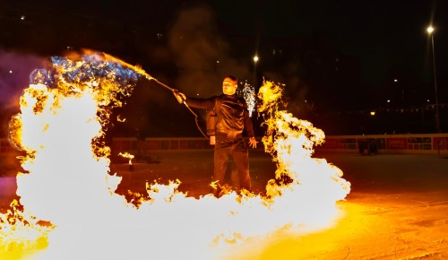 Огненное шоу и массовый флешмоб организовали на катке в парке «70-летия Победы»